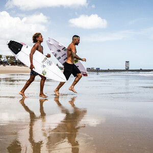 O currículo do atleta inclui títulos como o Tricampeonato Cearense (categorias Sub-10, Sub-12 e Sub-14) e o título de Campeão Brasileiro geral Sub-12 em 2024. No mesmo ano, Saymon venceu o Rip Curl Grom Search e as duas primeiras etapas do Circuito Brasileiro CBSurf de categorias de base. O histórico do competidor registra ainda vitórias no circuito paraibano e em eventos da nova geração do Surf brasileiro.